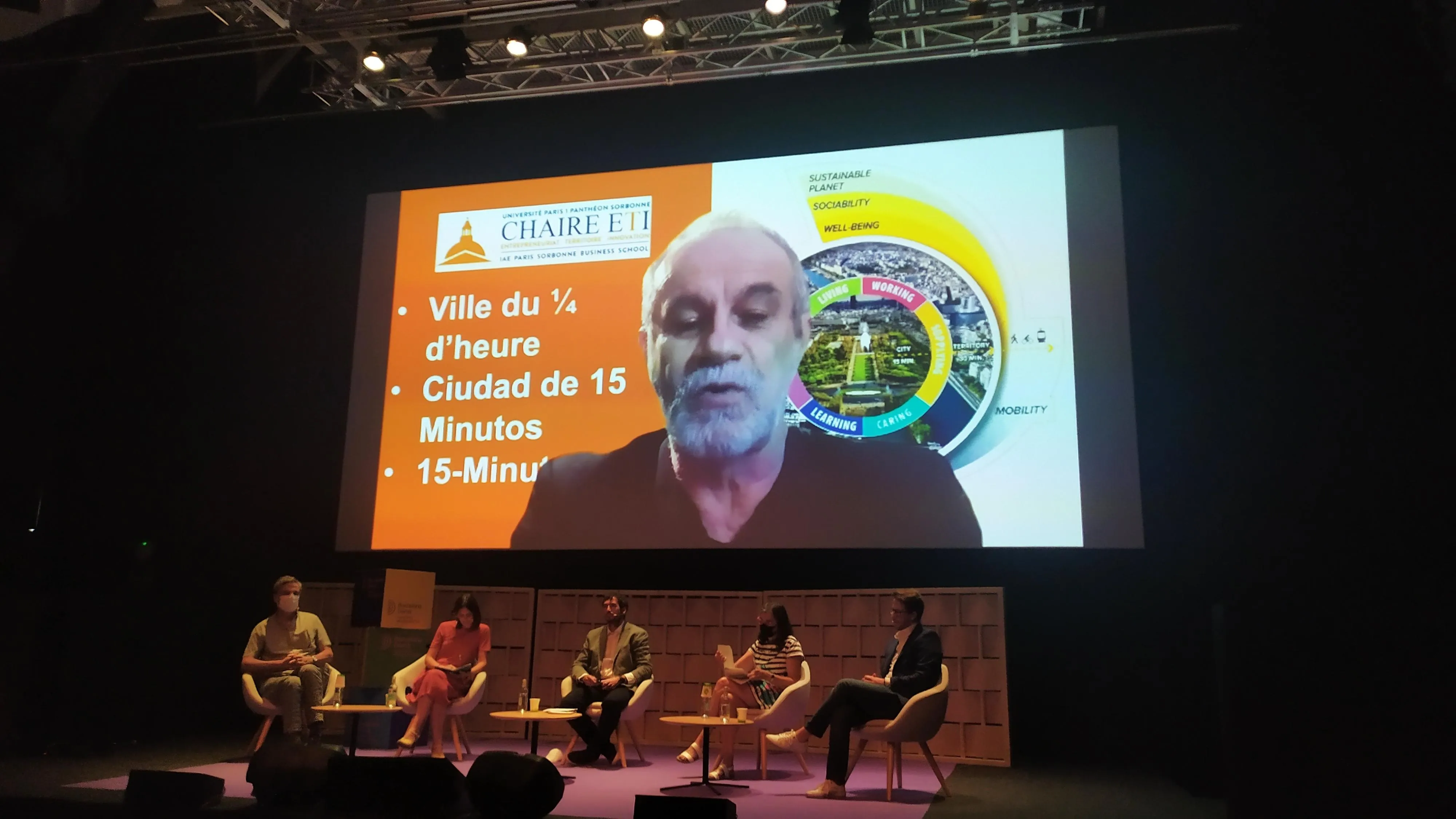 Finalment, la darrera taula de debat ha estat moderada per David Guerrero, periodista de La Vanguàrdia. La ponència principal ha anat a càrrec de Carlos Moreno, conseller especial d'Urbanisme a l'Ajuntament de París i director científic de la càtedra Emprenedoria, Territori i Innovació a la Universitat de la Sorbona de París. Moreno ha explicat els avantatges d'avançar cap a la ciutat dels 15 minuts per assegurar que a tots els barris hi hagi varietat de serveis, i que s'hi puguin dur a terme totes les activitats quotidianes i millorar així la qualitat de vida de les persones. També que “cal dotar d'altres usos infraestructures que ja són presents als barris i poden ajudar a dinamitzar la vida de les persones que hi viuen”. I sobretot canviar els paràmetres de la mobilitat per dessaturar els centres i rescatar la idea de la proximitat”.