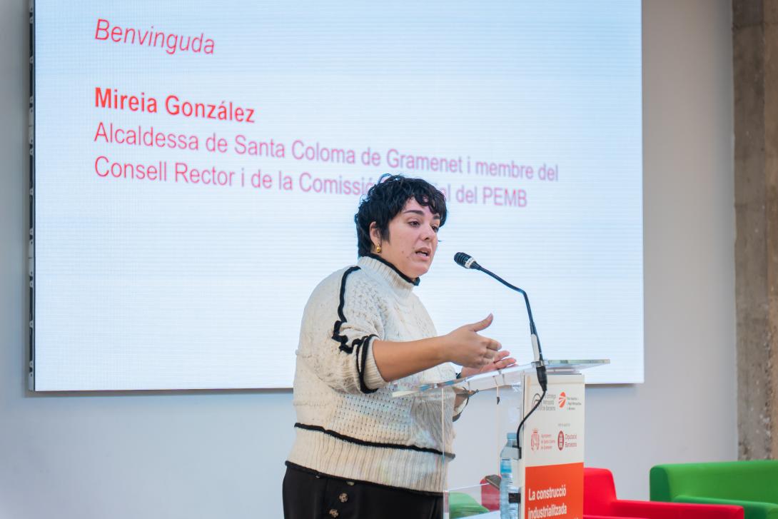 La alcaldesa de Santa Coloma de Gramenet y miembro del Consejo Rector y de la Comisión Territorial del PEMB, Mireia González, abrió la sesión señalando que la construcción industrializada “necesita un salto de escala” para responder a la crisis de vivienda y defendió que las políticas públicas de vivienda deben ser ambiciosas: “Tenemos un nivel de densidad muy elevado y cada metro cuadrado tiene un valor altísimo porque se le puede dar mucho uso”. González destacó que los planes locales de vivienda de la ciudad afrontan los retos de incrementar el parque existente, rehabilitarlo y prevenir la pobreza energética.