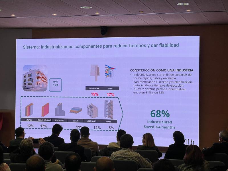 Guillermo Prudenciano, expert en construcció industrialitzada, va posar en relleu els beneficis d'aquest model per fer més eficient i sostenible la construcció d'habitatges a gran escala i donar resposta a la crisi d'habitatge. ”La industrialització permet fer més amb menys, mitjançant la digitalització i un control de qualitat rigorós”, va destacar, alhora que va subratllar que la producció en fàbrica redueix els temps de construcció, optimitza costos, minimitza l'impacte ambiental i ofereix millors condicions a qui hi treballa.