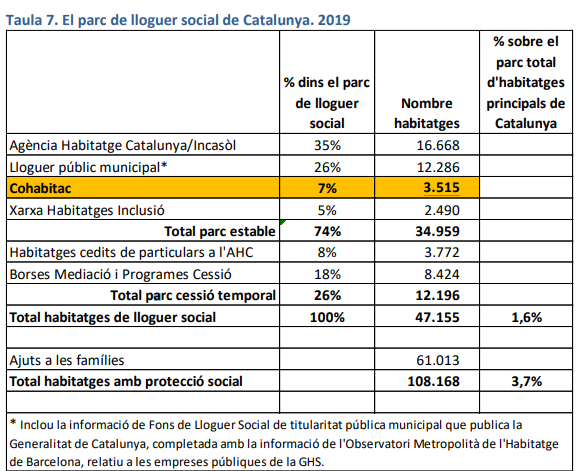 Fuente: Retos y limitaciones de la promoción y la gestión de viviendas de alquiler social en Cataluña. Cohabitac y Mesa de Entidades del Tercer Sector Social.