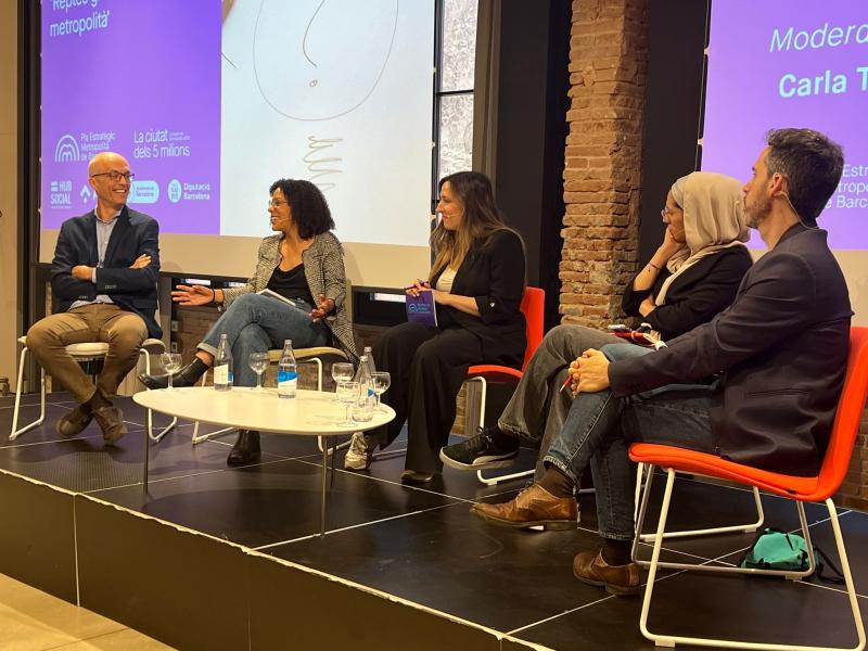 En la segunda parte de la jornada, se ha celebrado un debate para reflexionar sobre los retos globales y cómo estos se trasladan en clave metropolitana. Moderado por la subdirectora del Diari Ara, Carla Turró, el debate ha contado con la participación de Jordi Torrent, jefe de estrategia del Puerto de Barcelona, Viviane Ogou, analista de la geopolítica del Sahel y presidenta de Puerta de África, Miriam Hatibi, analista y consultora en Sibilare, y Jaime Palomera, codirector del Instituto de Investigación Urbana de Barcelona(IDRA).