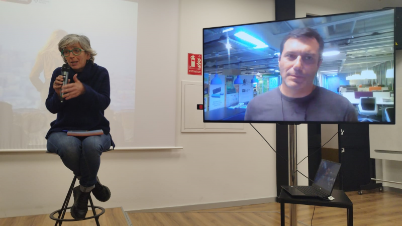 Para debatir a posteriori sobre qué impacto tiene la digitalización en el mercado laboral y los cambios que ello conlleva y comportará en las ciudades, como las posibles ventajas de la deslocalización del trabajo en entornos metropolitanos, se invitó a diferentes personas expertas en la materia . Albert Cañigueral, autor de El trabajo ya no es lo que era y coproductor del documental, se conectó en remoto desde Helsinki (Finlandia) —un ejemplo más de las oportunidades que ofrecen las nuevas tecnologías— y planteó más preguntas que respuestas: ¿A qué le llamamos tecnología? ¿Qué papel tiene el género? ¿Es el cooperativismo una respuesta a la deshumanización?