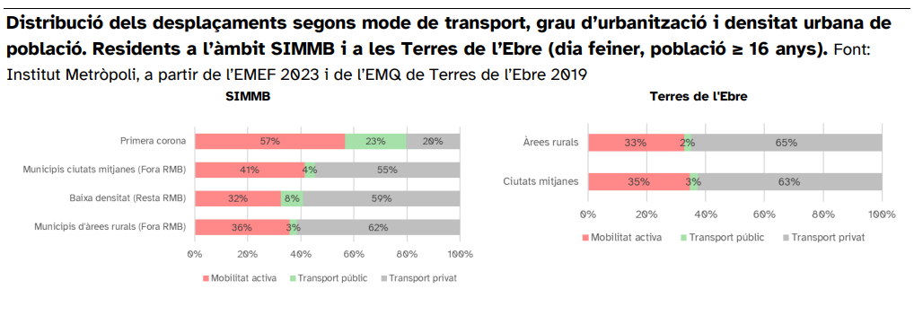 El estudio se ha elaborado a partir de la Encuesta de movilidad en día laborable 2023 del Sistema Integrado de Movilidad Metropolitana de Barcelona (SIMMB, equivalente a la provincia de Barcelona), la Encuesta de movilidad cotidiana 2019 de Les Terres de l'Ebre y datos 2024 de telefonía móvil del Ministerio de Transportes y Movilidad Urbana. No se ha podido analizar la movilidad cotidiana del resto de ámbitos de Cataluña dado que en el momento de redacción todavía no estaban cubiertos por encuestas, o en el caso del Camp de Tarragona, el trabajo de campo estaba afectado por la pandemia de la covid-19.
